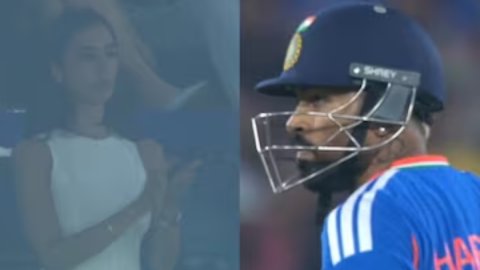 पांड्या के आउट होने के बाद कैमरामैन का ध्यान स्टैंड की ओर गया, जहां हार्दिक की गर्लफ्रेंड माहिका शर्मा मौजूद थीं और वो पांड्या के विकेट पर ताली बजाती नजर आईं। उनके इस रिएक्शन से फैंस काफी हैरान दिखे और वो सोशल मीडिया पर मीम्स बनाने लगे। आप इस वीडियो को नीचे देख सकते हैं।
