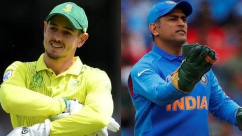 Most dismissals as Wicketkeeper in T20 World Cup: साउथ अफ्रीका के विकेटकीपर बल्लेबाज क्विंटन डी कॉक (Quinton de Kock) सोमवार (9 फरवरी) को अहमदाबाद के नरेंद्र मोदी स्टेडियम में कनाडा के खिलाफ हुए टी-20 वर्ल्ड कप मुकाबले में भले ही बल्लेबाजी में कुछ खास नहीं कर पाए लेकिन विकेटकीपिंग में उन्होंने कमाल रिकॉर्ड बना दिया।