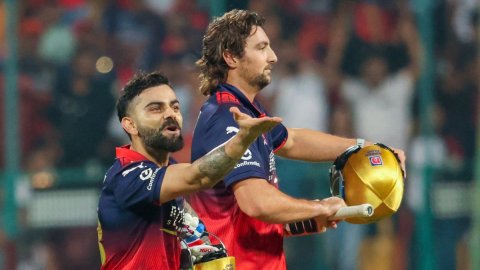 Royal Challengers Bengaluru: रॉयल चैलेंजर्स बेंगलुरु (आरसीबी) ने आईपीएल 2026 का आगाज धमाकेदार जीत के साथ किया। एम. चिन्नास्वामी क्रिकेट स्टेडियम में शनिवार को खेले गए मुकाबले में आरसीबी ने सनराइजर्स हैदराबाद (एसआरएच) को 6 विकेट से हराया। विराट कोहली ने 69 रनों की दमदार पारी खेली और वह टीम की जीत के नायक रहे। मैच के बाद विराट का रोमांटिक अंदाज देखने को मिला और उन्होंने अनुष्का शर्मा को 'फ्लाइंग किस' दी।