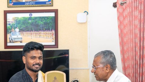 केरल के मुख्यमंत्री पिनाराई विजयन ने भारतीय विकेटकीपर-बल्लेबाज संजू सैमसन को सम्मानित किया, जो टी20 वर्ल्ड कप 2026 में भारत की खिताबी जीत के नायक रहे थे। सीएम पिनाराई विजयन ने सोमवार (16 मार्च) को अपने सरकारी आवास 'क्लिफ हाउस' में संजू सैमसन को आमंत्रित किया था।