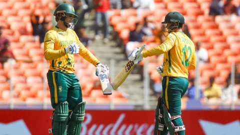 ICC T20 World Cup: नरेंद्र मोदी स्टेडियम में टी20 विश्व कप 2026 के ग्रुप डी का मुकाबला अफगानिस्तान और दक्षिण अफ्रीका के बीच खेला जा रहा है। दक्षिण अफ्रीका ने पहले बल्लेबाजी करते हुए 6 विकेट पर 187 रन बनाए हैं।