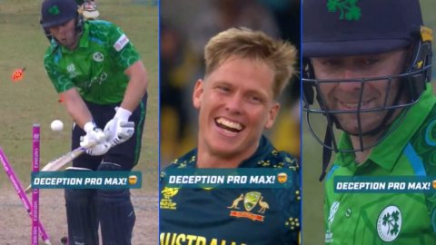 आईसीसी टी20 वर्ल्ड कप 2026 में ऑस्ट्रेलिया बनाम आयरलैंड मुकाबले के दौरान नाथन एलिस ने अपनी बेहतरीन स्लोअर बॉल से रॉस अडायर को पूरी तरह चौंकाते हुए पारी के दूसरे ओवर में ही बड़ा विकेट दिलाया। इस गेंद ने न सिर्फ बल्लेबाज़ को चौंकाया, बल्कि सीधा मिडल स्टंप को ही उखाड़ दिया।