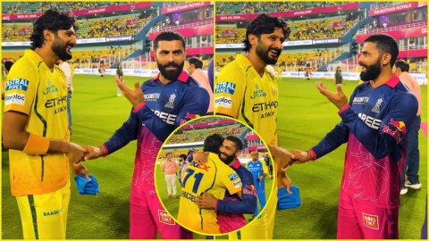 Khaleel Ahmed Teases Ravindra Jadeja Video: भारतीय टीम के दिग्गज ऑलराउंडर रविंद्र जडेजा (Ravindra Jadeja) इंडियन प्रीमियर लीग के 19वें सीजन (IPL 2026) में राजस्थान रॉयल्स (Rajasthan Royals) टीम का हिस्सा हैं और उन्होंने इस टूर्नामेंट के लिए एक नया हेयरस्टाइल रखा है। गौरतलब है कि फैंस तो रविंद्र जडेजा के नए लुक और हेयरस्टाइल को काफी पसंद कर रहे हैं, लेकिन इसी बीच रविंद्र जडेजा के पुराने साथी और करीबी दोस्त खलील अहमद (Khaleel Ahmed) उनके हेयरस्टाइल का मज़ाक उड़ाते कैमरे में कैद हुए हैं।