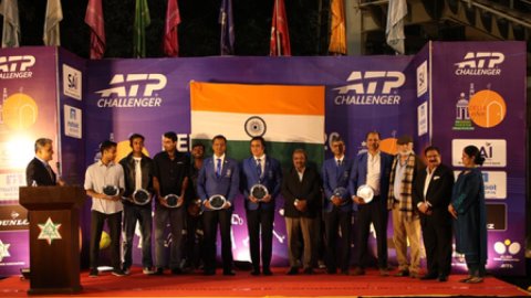 दिल्ली लॉन टेनिस एसोसिएशन (डीएलटीए) ने मंगलवार शाम दिल्ली ओपन एटीपी चैलेंजर इवेंट के दौरान डेविस कप क्वालीफायर में नीदरलैंड्स पर प्रभावशाली जीत के लिए भारतीय डेविस कप टीम को सम्मानित किया।
