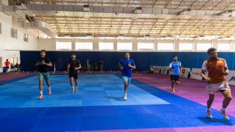 भारतीय कबड्डी खिलाड़ी बेल्लारी के इंस्पायर इंस्टीट्यूट ऑफ स्पोर्ट (आईआईएस) में एक हाई-परफॉर्मेंस कैंप के लिए इकट्ठा हुए हैं। कैंप का उद्देश्य आने वाली चुनौतियों के लिए एथलीटों का एक मजबूत, फिट और तैयार ग्रुप बनाने पर है।