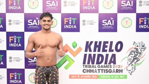 रायपुर के इंटरनेशनल स्विमिंग कॉम्प्लेक्स में बुधवार से शुरू हुए पहले खेलो इंडिया ट्राइबल गेम्स (केआईटीजी) 2026 में, कर्नाटक के धोनिश एन और ओडिशा की अंजलि मुंडा ने पुरुषों और महिलाओं की 200 मीटर फ्रीस्टाइल स्विमिंग इवेंट में शानदार प्रदर्शन करते हुए पहले दो गोल्ड मेडल जीते।
