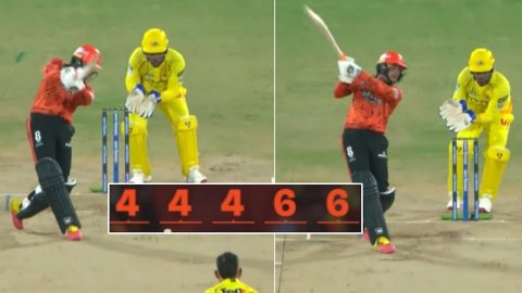 सनराइजर्स हैदराबाद और चेन्नई सुपर किंग्स के बीच खेले जा रहे आईपीएल 2026 के मुकाबले में अभिषेक शर्मा ने पावरप्ले में धमाकेदार बल्लेबाज़ी करते हुए चेन्नई के गेंदबाज़ों की धज्जियां उड़ा दीं। वहीं इस दौरान उन्होंने मैथ्यू शॉर्ट के एक ओवर में ही 25 रन कूट डाले, जिसमें चौके-छक्कों की बरसात देखने को मिली।
