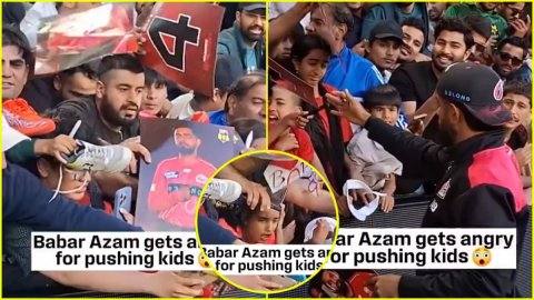 जी हां, ऐसा ही हुआ है। दरअसल, 29 सेकेंड के इस वायरल वीडियो में बाबर आज़म अपने फैंस को ऑटोग्राफ दे रहे होते हैं कि इसी बीच एक बदतमीज फैन बाबर से ऑटोग्राफ लेने के लिए अपने सामने खड़े दो छोटे बच्चों को धक्का देने लगता है। बाबर आज़म ये चीज नोटिस कर लेते हैं और तुरंत ही उस फैन को आईना दिखाते हुए पीछे हटने को कहते हैं। आप ये वीडियो नीचे देख सकते हो।