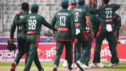 बांग्लादेश क्रिकेट टीम ने बुधवार (11 मार्च) को ढाका के शेरे बांग्ला नेशनल स्टेडियम में खेले गए पहले वनडे मैच में पाकिस्तान को 8 विकेट से हराकर तीन वनडे मैचों की सीरीज में 1-0 की बढ़त बना ली है। इस मैच में पाकिस्तान की पूरी टीम पहले बल्लेबाजी करते हुए 30.4 ओवर में 114 रनों पर ऑलआउट हो गई जवाब में बांग्लादेश ने सिर्फ 2 विकेट खोकर 15.1 ओवर में ही लक्ष्य हासिल कर लिया।