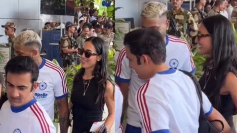दरअसल, भारतीय टीम मुंबई एयरपोर्ट से अहमदाबाद के लिए रवाना हो रही थी, जहां रविवार (8 मार्च) को न्यूजीलैंड के खिलाफ टी20 वर्ल्ड कप 2026 का फाइनल मुकाबला खेला जाना है। इसी दौरान हार्दिक पांड्या अपनी गर्लफ्रेंड माहिका शर्मा के साथ नजर आए और उन्होंने उन्हें कोच गौतम गंभीर से मिलवाया।