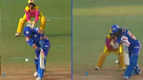 लक्ष्य का पीछा करने उतरी मुंबई इंडियंस को तीसरे ओवर में पहला झटका लगा। क्रांति गौड़ की गुड लेंथ गेंद अंदर की ओर आई और सजीवन सजना उसे ठीक से पढ़ नहीं पाईं। गेंद पैड पर लगी और अंपायर ने एलबीW करार देते हुए उंगली उठा दी, जिसके चलते 10 रन पर ही उन्हें पवेलियन लौटना पड़ा।