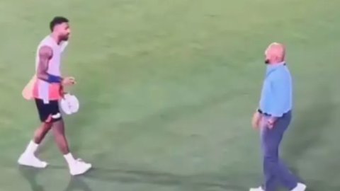दरअसल, जिस समय ये वीडियो रिकॉर्ड किया गया उस समय पांड्या बैटिंग प्रैक्टिस के लिए मैदान पर आते हैं। ब्रॉडकास्ट टीम का हिस्सा रहे कार्तिक उसी वक्त पांड्या को देखकर इस स्टार खिलाड़ी का अभिवादन करते हैं लेकिन देखते ही देखते दोनों के बीच बातचीत तनावपूर्ण हो जाती है और पांड्या गुस्सा हो जाते हैं जबकि कार्तिक उन्हें शांत करने की कोशिश करते हैं। हार्दिक की इस प्रतिक्रिया का कारण अभी तक कन्फर्म नहीं हुआ है। इस वीडियो को आप नीचे देख सकते हैं।