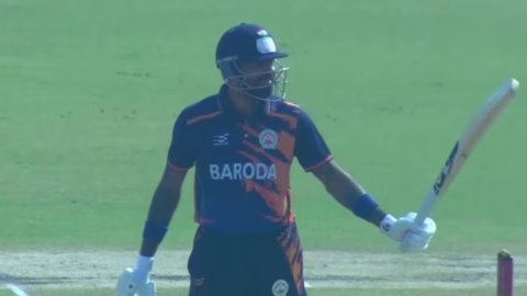 पांड्या ने क्रीज पर आते ही बिना समय गंवाए ताबड़तोड़ बल्लेबाजी शुरू कर दी। उन्होंने सिर्फ 19 गेंदों में अपना अर्धशतक पूरा किया और नौ गगनचुंबी छक्के और दो चौके लगाए, जिससे उनका स्ट्राइक रेट 240 से भी ज़्यादा रहा। उनका ये हमला एक अहम समय पर आया, जिससे टॉप ऑर्डर में शुरुआती लड़खड़ाहट के बाद बड़ौदा को मोमेंटम मिला। प्रियांशु मोलिया के साथ मिलकर, पांड्या ने पांचवें विकेट के लिए सिर्फ 51 गेंदों में 90 रन जोड़े, ये साझेदारी निर्णायक साबित हुई और पारी को बड़ौदा के पक्ष में मोड़ दिया।