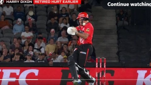 Harry Dixon Injury BBL: लक्ष्य का पीछा करने उतरी मेलबर्न की टीम के बल्लेबाज हैरी डिक्सन बल्लेबाजी के दौरान गर्दन के पास गेंद लगने से चोटिल हो गए, जिसके बाद रिटायर्ड हर्ट होकर मैदान के बाहर जाना पड़ा।