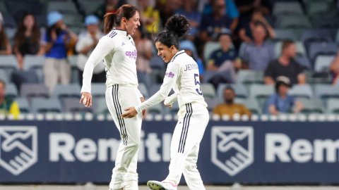 ऑस्ट्रेलिया की महिला क्रिकेट टीम के खिलाफ पर्थ के वाका क्रिकेट ग्राउंड पर खेले जा रहे एकमात्र टेस्ट मैच में टीम इंडिया बेशक बैकफुट पर नजर आ रही है लेकिन टीम इंडिया की स्टार खिलाड़ी जेमिमा रोड्रिग्स इस टेस्ट मैच के पहले दो दिन छाई रहीं। पहले तो रोड्रिग्स ने टीम इंडिया के लिए बल्लेबाजी करते हुए 52 रनों की अर्द्धशतकीय पारी खेली और बाद में जब फील्डिंग की बारी आई तो उन्होंने कई जबरदस्त कैच पकड़े।