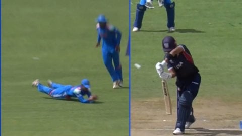 पारी के दूसरे ओवर में भारतीय तेज़ गेंदबाज़ हेनिल पटेल ने शानदार लाइन-लेंथ से गेंद डालते हुए यूएसए के ओपनर अमरिंदर गिल को छकाया। गेंद अतिरिक्त उछाल के साथ स्लिप की ओर गई, जहां दूसरे स्लिप पर खड़े विहान मल्होत्रा ने आगे की ओर डाइव लगाते हुए एक जबरदस्त कैच लपक लिया।