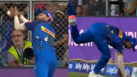 आईपीएल 2026 के तीसरे मुकाबले में मुंबई इंडियंस का सामना कोलकाता नाइट राइडर्स से हो रहा है और वानखेड़े स्टेडियम में खेले जा रहे इस मैच के दौरान रोहित शर्मा के लिए एक ऐसा पल आया जिसे वो कभी भी याद नहीं करना चाहेंगे। हिटमैन ने बाउंड्री पर एक आसान सा कैच टपका दिया और उनके इस कैच ड्रॉप के बाद चौका भी चला गया।