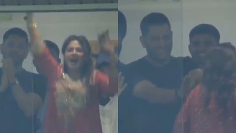 साक्षी को लगा कि बुमराह ने करन को आउट कर दिया है और वो एक्साइटमेंट में उछलीं और चिल्लाईं, लेकिन धोनी को पता था कि वो आउट नहीं थ और उन्होंने उन्हें शांत किया और समझाया कि क्या हुआ। इस मजेदार नजारे का वीडियो सोशल मीडिया पर वायरल हो गया है जिसे आप नीचे देख सकते हैं।