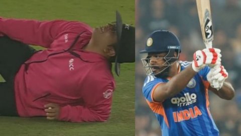 दरअसल, यह घटना भारतीय पारी के 9वें ओवर में हुई, जब संजू सैमसन पूरी तरह सेट नजर आ रहे थे। इसी ओवर में उन्होंने डाउन द ग्राउंड एक सीधा और फ्लैट शॉट खेला। गेंदबाज़ी कर रहे डोनोवन फरेरा ने कैच पकड़ने की कोशिश की, लेकिन गेंद की रफ्तार इतनी तेज़ थी कि वह उनके हाथ से फिसलकर सीधे अंपायर रोहन पंडित के घुटने पर जा लगी।