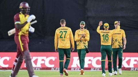 South Africa vs West Indies 1st T20I Highlights: जॉर्ज लिंडे (George Linde) की बेहतरीन गेंदबाजी और कप्तान एडेन मार्करम (Aiden Markram) के तूफानी अर्धशतक के दम पर साउथ अफ्रीका ने मंगलवार (27 जनवरी) को पार्ल के बोलैंड पार्क में खेले गए पहले टी-20 इंटरनेशनल में वेस्टइंडीज को 9 विकेट से हराकर तीन मैचों की सीरीज में 1-0 की बढ़त बना ली है। विकेट के हिसाब से वेस्टइंडीज के खिलाफ इस फॉर्मेट में साउथ अफ्रीका की यह सबसे बड़ी जीत है।