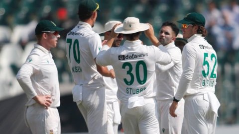 रावलपिंडी में पाकिस्तान के खिलाफ खेले जा रहे दूसरे टेस्ट के तीसरे दिन की समाप्ति तक दक्षिण अफ्रीका ने अपनी स्थिति मजबूत कर ली है। तीसरे दिन की समाप्ति के समय पाकिस्तान का स्कोर 4 विकेट पर 94 था। बाबर आजम 49 और मोहम्मद रिजवान 16 रन बनाकर खेल रहे थे। पाकिस्तान के पास फिलहाल 23 रन की बढ़त है।