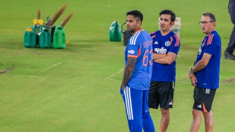 T20 World Cup Final: भारत और न्यूजीलैंड के बीच रविवार को नरेंद्र मोदी स्टेडियम में टी20 वर्ल्ड कप 2026 का फाइनल खेला जाना है। इस मुकाबले से पहले कप्तान सूर्यकुमार यादव और हार्दिक पंड्या के साथ हेड कोच गौतम गंभीर ने नरेंद्र मोदी स्टेडियम कैंपस में हनुमानजी मंदिर के दर्शन किए।