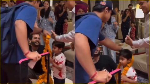 जी हां, ऐसा ही हुआ है। दरअसल, सोशल मीडिया पर वैभव सूर्यवंशी का एक नया वीडियो वायरल हुआ है जिसमें वो अपने एक नन्हे फैन को फूलों की माला पहनाते दिखे हैं। इस 21 सेकंड के वीडियो में देखा जा सकता है कि वैभव कंधे पर बैग टांगकर होटल में एंट्री लेते हैं और इसी बीच एक नन्हे फैन को देखकर तुरंत ही उसे अपनी फूलों की माला पहना देते हैं। आप ये वीडियो नीचे देख सकते हो।