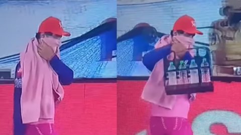 हालांकि, इस दौरान ड्रिंक्स कैरी करते हुए सूर्यवंशी शरारती अंदाज में तौलिए से अपना चेहरा छिपाते हुए देखे गए। ये मज़ेदार घटना तब हुई जब सूर्यवंशी सपोर्ट स्टाफ की मदद करते हुए खिलाड़ियों को ड्रिंक्स बांट रहे थे। ऐसा करते समय, वो कैमरों से शर्माते हुए दिखे। उन्होंने ध्यान से बचने की एक मज़ेदार कोशिश में तौलिए से अपना चेहरा ढक लिया। इस मजेदार वीडियो को आप नीचे देख सकते हैं।