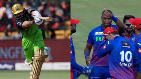 हालांकि, वो तो भला हो लुंगी नगिडी का वरना ये जोड़ी दिल्ली के लिए और भी खतरनाक साबित हो सकती थी। पावरप्ले के आखिरी ओवर में लुंगी ने खतरनाक दिख रहे विराट कोहली को 19 रन पर आउट करके अपनी टीम को पहली सफलता दिलाई और आरसीबी को एक बड़ा झटका दे दिया। विराट ने लुंगी के खिलाफ एक बड़ा शॉट लगाने की कोशिश की मगर वो गेंद को अच्छे से टाइम नहीं कर पाए और पथुम निस्सांका के हाथों लपके गए।