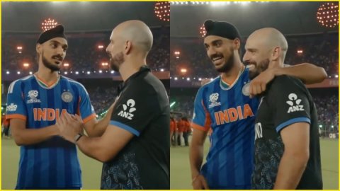 Arshdeep Singh And Daryl Mitchell Video: आईसीसी टी20 वर्ल्ड कप 2026 (ICC T20 World Cup 2026) का फाइनल बीते रविवार, 08 मार्च को अहमदाबाद के नरेंद्र मोदी स्टेडियम में खेला गया था जहां सूर्यकुमार यादव (Suryakumar Yadav) की कैप्टेंसी वाली भारतीय टीम ने 256 रनों का टारगेट डिफेंड करके न्यूजीलैंड को 96 रनों से धूल चटाई। गौरतलब है कि इसी बीच मैदान पर अर्शदीप सिंह (Arshdeep Singh) ने गलती से डेरिल मिचेल (Daryl Mitchell) को एक थ्रो मार दी थी जिसके लिए वो दो बार कीवी खिलाड़ी से माफी मांगते नज़र आए।