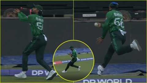 Babar Azam And Shaheen Afridi Combine Catch Video: आईसीसी टी20 वर्ल्ड कप 2026 (ICC T20 World Cup 2026) का पहला मुकाबला शनिवार, 07 फरवरी को पाकिस्तान और नीदरलैंड्स (PAK vs NED) के बीच कोलंबो के सिंहली स्पोर्ट्स क्लब में खेला जा रहा है। गौरतलब है कि इस मुकाबले में पाकिस्तानी खिलाड़ी बाबर आज़म (Babar Azam) और शाहीन अफरीदी (Shaheen Afridi) ने मिलकर बाउंड्री के पास एक बेहद ही शानदार कैच पकड़ा है जिसका वीडियो सोशल मीडिया पर तेजी से वायरल हो रहा है।