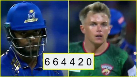 जी हां, ऐसा ही हुआ। दरअसल, ये पूरा नज़ारा एमआई की इनिंग के 18वें ओवर में देखने को मिला। डेजर्ट वाइपर्स के लिए ये ओवर खुद कैप्टन सैम करन करने आए थे जो कि उनकी एक भूल साबित हुई। ऐसा इसलिए क्योंकि यहां रोमारियो ने सामने वाले गेंदबाज़ को पहली गेंद से ही अटैक करने का मन बना लिया था।