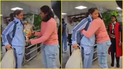 22 सेकेंड के इस बेहद ही प्यारे वीडियो में देखा जा सकता है कि सजीवन संजना एयरपोर्ट पर भारतीय टीम के स्वागत में खड़ी होती हैं और एक-एक करके सभी खिलाड़ियों से हाथ मिलाकर और गले मिलकर उनका स्वागत करती हैं। इसी बीच जैसे ही सजीवन संजना के सामने कैप्टन कौर आती हैं, वो बेहद ही रोमांटिक अंदाज़ में उन्हें फूल का गुलदस्ता देकर केरल में उनका स्वागत करती हैं। आप ये वीडियो नीचे देख सकते हो।
