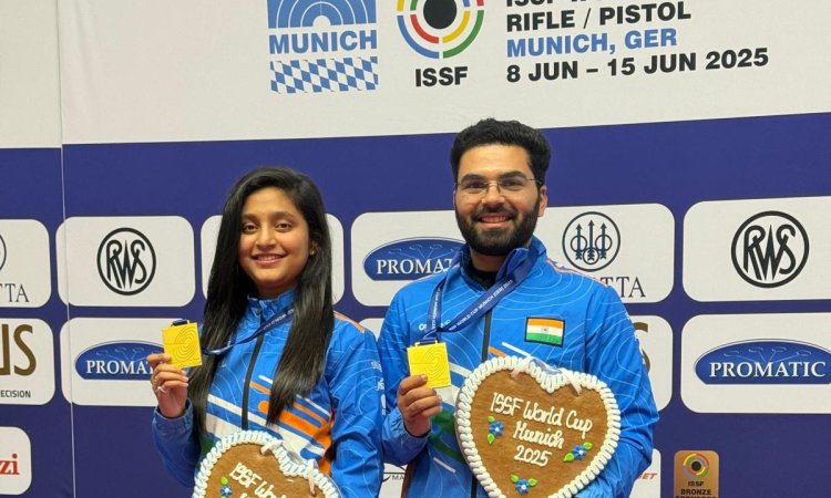 ISSF World Cup: आर्य बोरसे और अर्जुन बाबूता की भारतीय जोड़ी ने शनिवार को आईएसएसएफ विश्व कप में 10 मीटर एयर राइफल मिश्रित टीम स्पर्धा में चीन के जिफेई वांग और लिहाओ शेंग को 17-7 से हराकर शानदार प्रदर्शन करते हुए स्वर्ण पदक जीता।