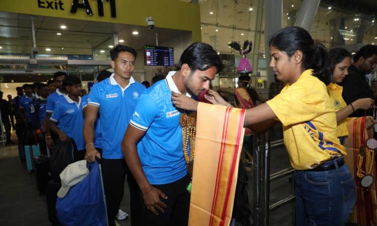 भारतीय जूनियर पुरुष हॉकी टीम विश्व कप 2025 के लिए चेन्नई पहुंची (Image Source: IANS)