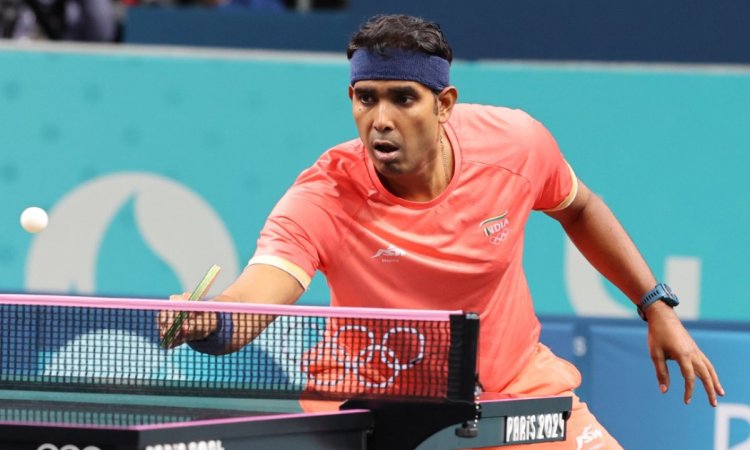 Paris: India's Sharath Kamal during a men's singles table tennis match at the Paris Olympics 2024 (Image Source: IANS)