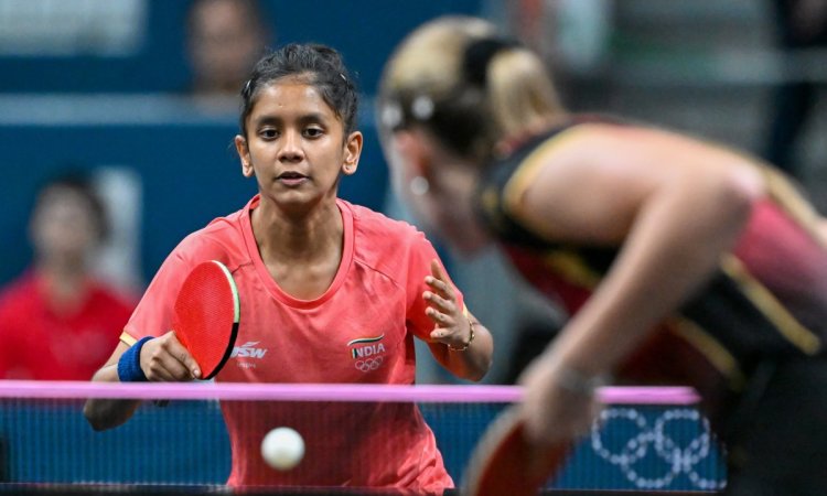 Paris : Women's teams quarterfinal table tennis match at the Paris Olympics 2024 (Image Source: IANS)