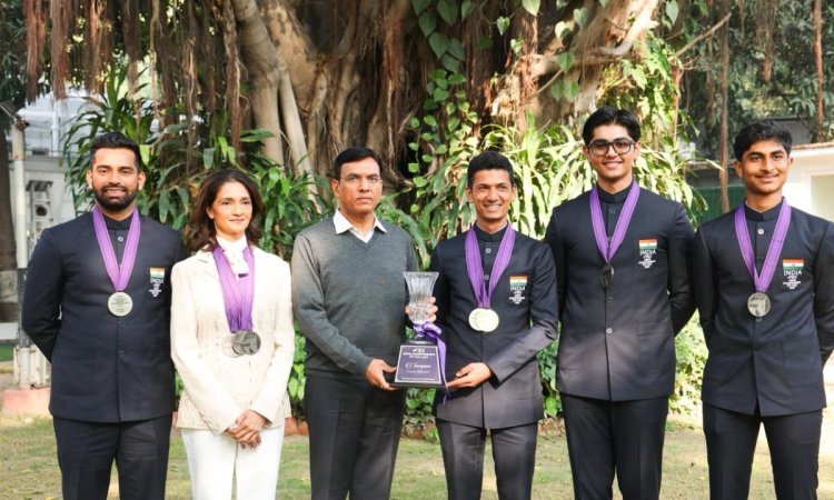 केंद्रीय युवा मामले और खेल मंत्री, डॉ. मनसुख मंडाविया ने शुक्रवार को एफईआई एशियन घुड़सवारी चैंपियनशिप 2025 में मेडल जीतने वाली इवेंटिंग और ड्रेसेज टीमों को उनके ऐतिहासिक प्रदर्शन के लिए सम्मानित किया। छह लोगों का दल पटाया से टीम और व्यक्तिगत इवेंट में पांच मेडल लेकर लौटा है। यह प्रदर्शन कॉन्टिनेंटल चैंपियनशिप में ऐतिहासिक है।